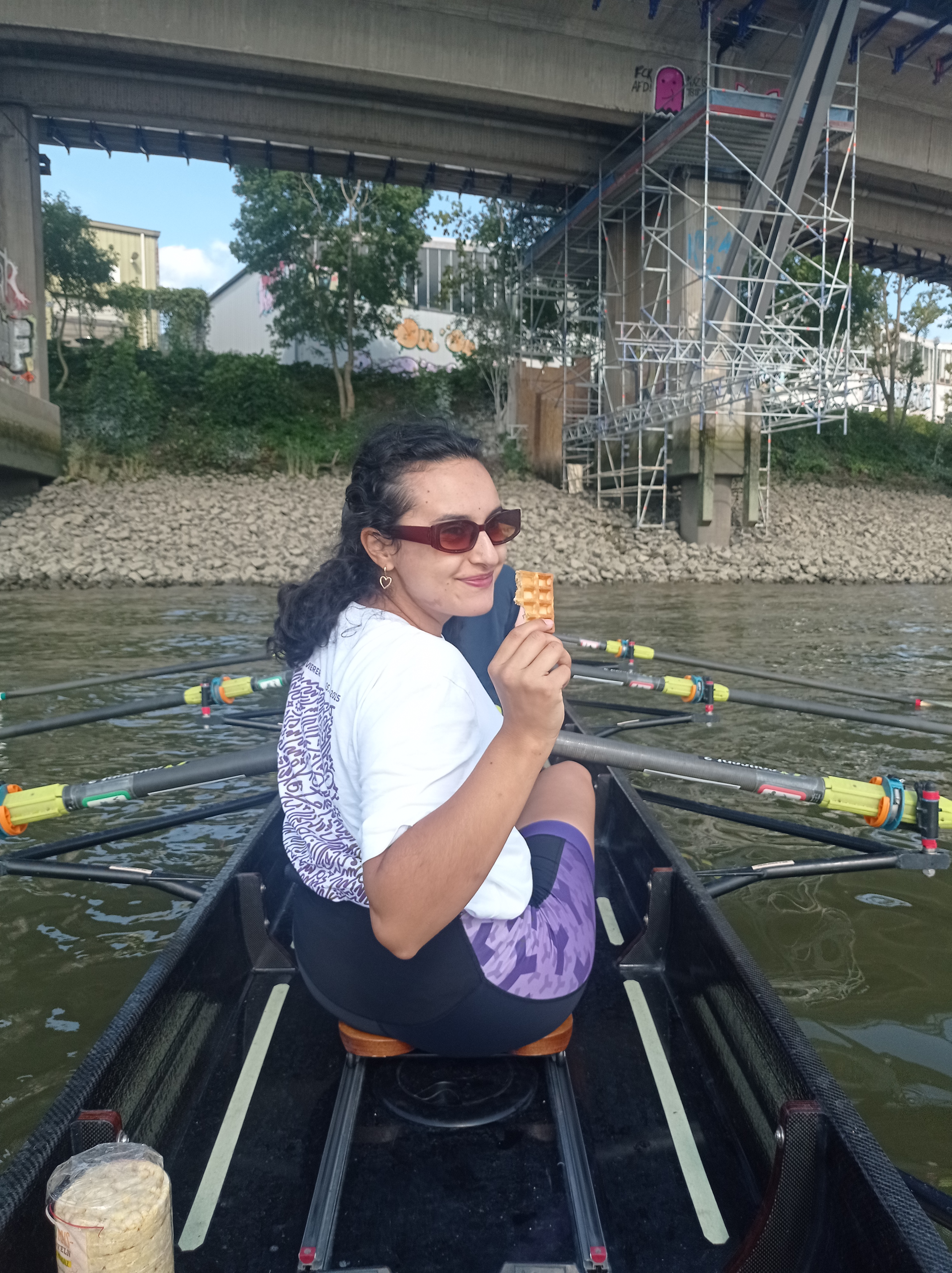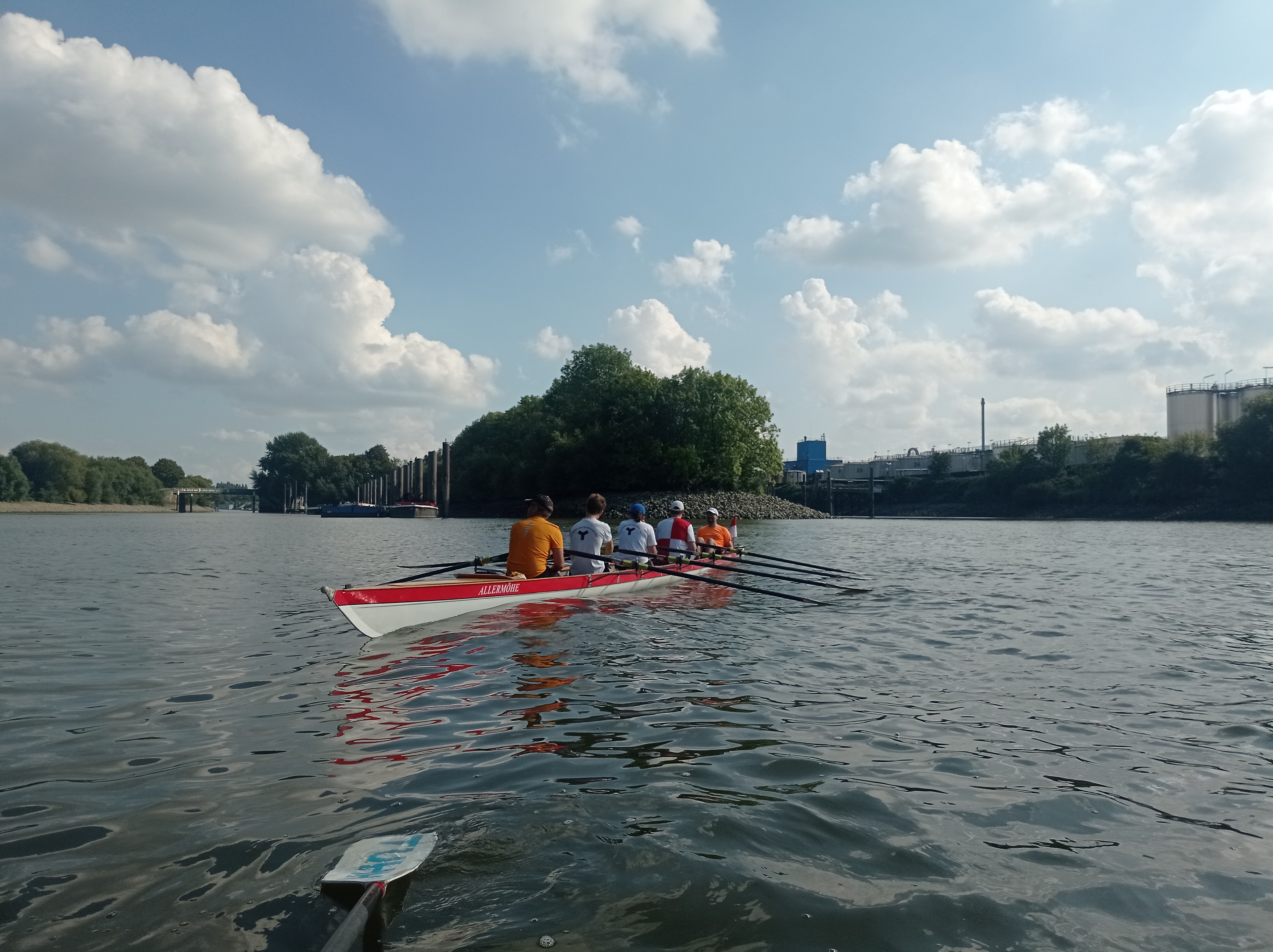 Am 30. August 2025 trafen sich Sebastian Ohlrogge, Jan-Niklas Studt, Laura Esteban, Maia Stimming, Josefine Harms, Martin und Elisabeth Dörnte, Leonie Schellhorn und ich,Tobias Stark, zur Mittagszeit am Ruderclub Süderelbe in Hamburg-Harburg, um das dortige Ruderrevier zu erkunden. Wir wurden von den Ruderern des RC Süderelbe herzlich empfangen und starteten mit ihnen gemeinsam in drei Booten auf der Süderelbe in Richtung Köhlbrandbrücke.