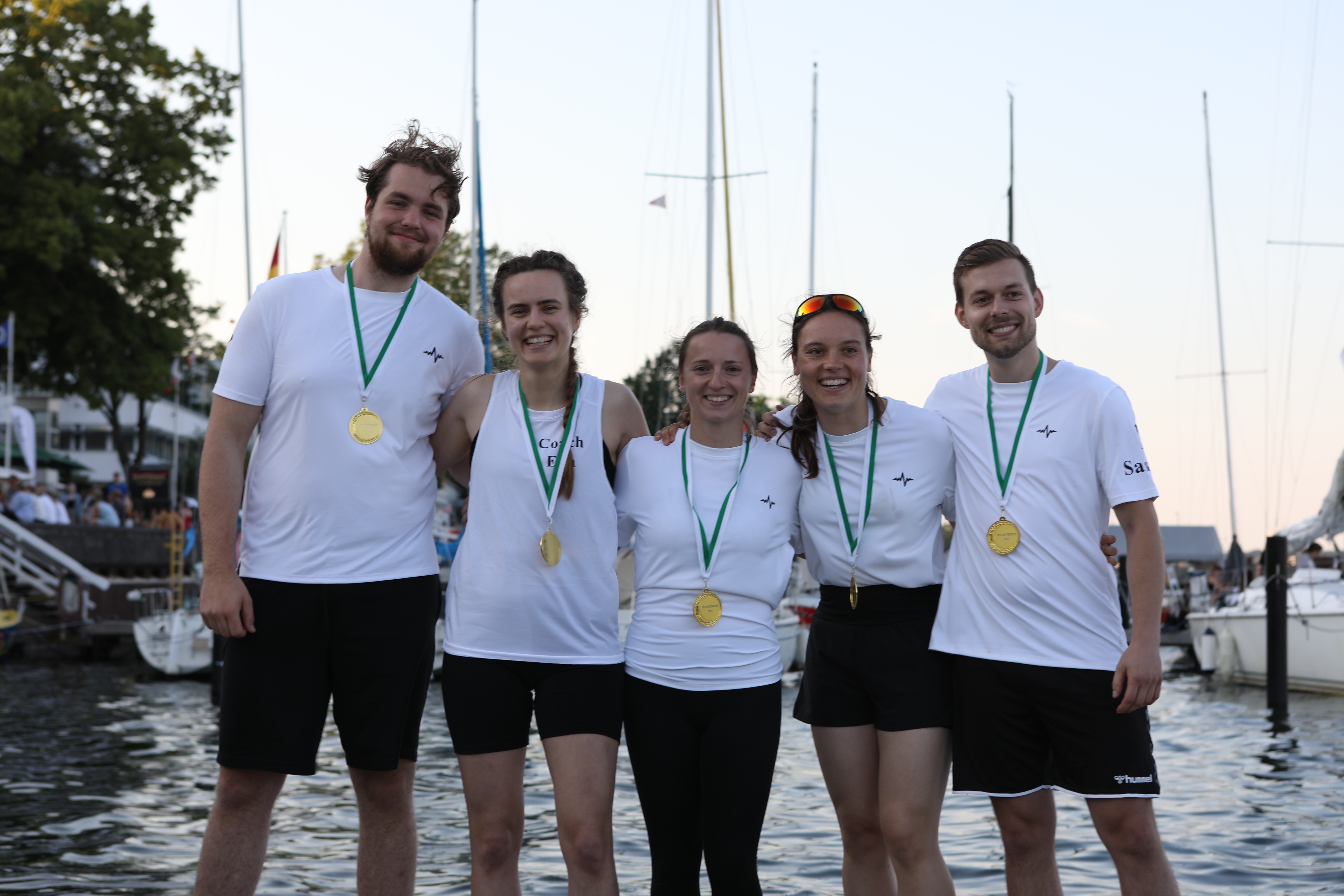 Wir sind sehr zufrieden, stolz und glücklich, dass wir als erstes der vier Boote die Ziellinie überqueren konnten und haben diesen Sieg gemeinsam mit dem anderen Viererteam, dem Achterteam, dem ARV und den anderen Kieler Rudervereinen erst bei der Germania und dann bei uns gefeiert.
